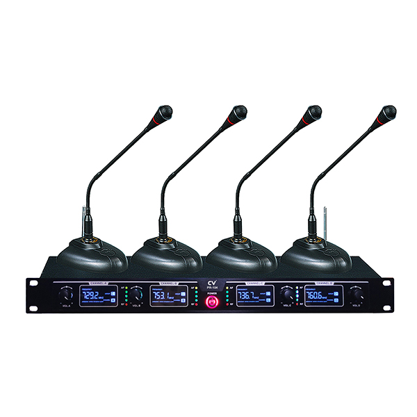 产品特点:PR-104是一款V段鹅颈会议话筒,配4支鹅颈无线会议话筒。
