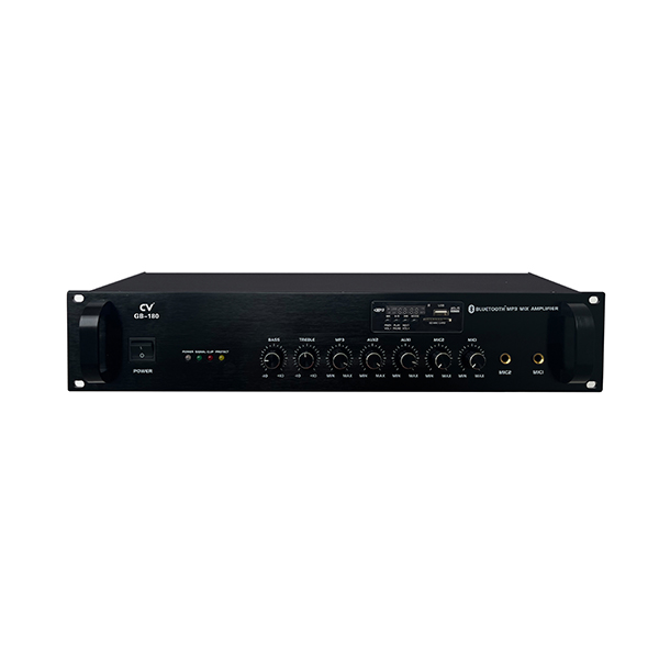 产品特点:内置蓝牙MP3解码播放器与FM收音机播放器,可自由切换播放模式;支持U盘及SD卡存储歌曲,更换歌曲方便;配带遥控,方便操作;采用先进高效功率放大电路,设有2路话筒输入,3路线路输入,1路辅助输出, 每路输入音量可独立控制,带有高低音音量调节;话筒1设为最高优先功能,自动抑制其他输入信号;设备设有异常工作保护警告功能,当输入信号过大、负载过重、温度过高、线路电路时,对应的指示灯提示,有极高的可靠性。 铝合金面板,美观实用。