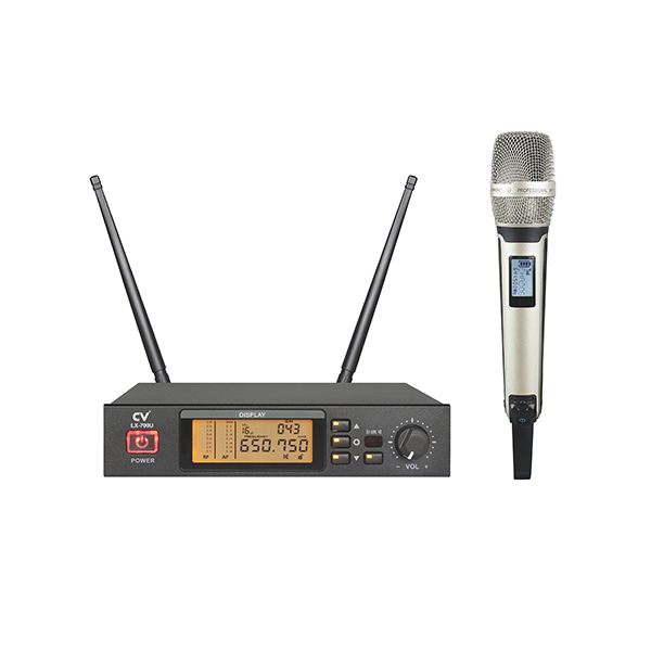 3、自主开发的LED显示屏指示了系统音量,电池电量,分集通道A/B切换显示,工作频率与通道。接收距离档位。系统锁键等。
